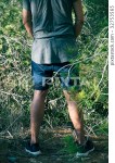 The son moves to the bushes to piss.